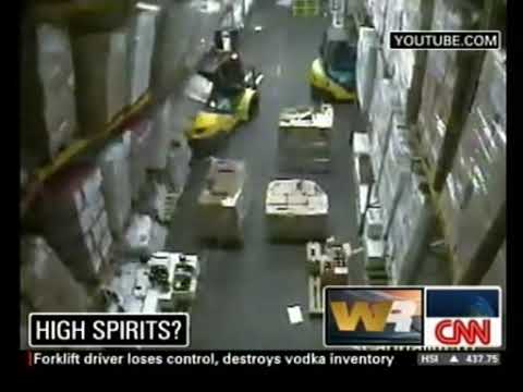 Vídeo mostra um acidente com empilhadeira em um depósito de vodka na Russia, foi grande o prejuízo da empresa.